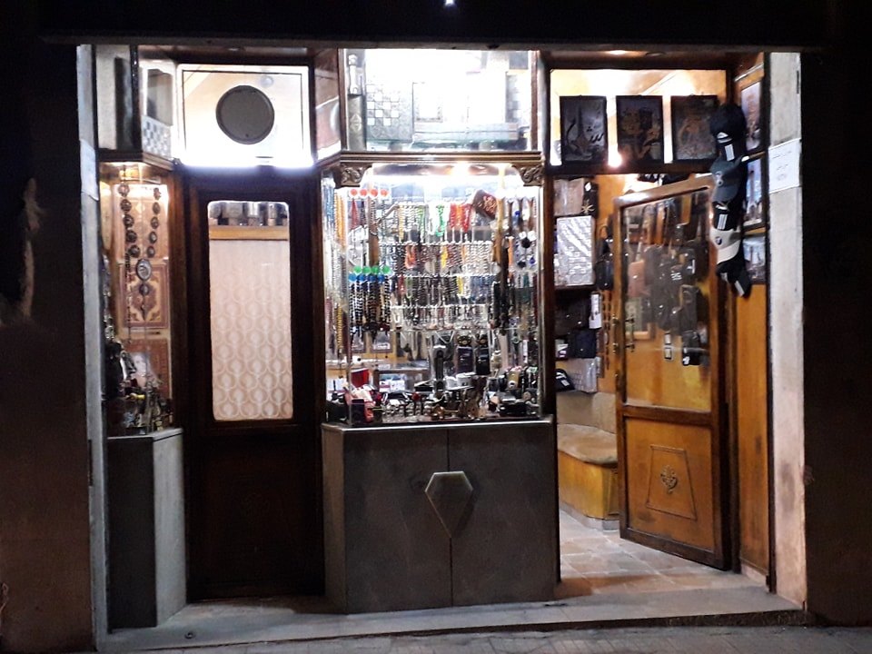 محل لبيع التذكارات و المسابح و طاولات الزهر و الموزاييك .